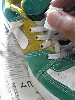 前足のシューズの紐切れてました(笑