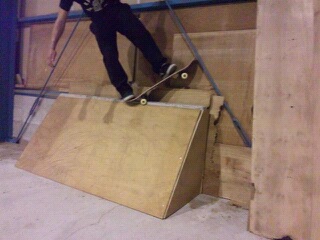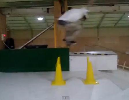 長男は、バンク上に縦コーンを2個並べてF/S180でメイク!